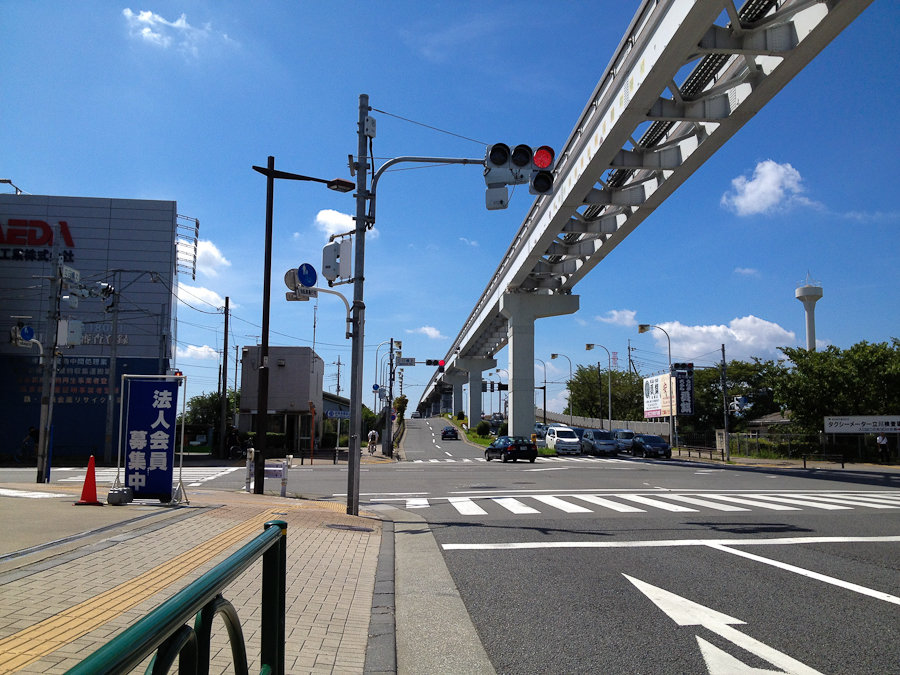 走り始めると、ギチギチした都内の幹線道路とは別世界の超開放的な空間。当然車は無く、ほぼまっすぐな道を一定のスピードで巡航でき、聞こえるのは風の音と蝉の声程度。いやー気持ちイイの一言。山奥の田舎道を走る森林浴的な開放感と、キッチリ整備された都会の道路をスピードを上げてグイグイ走れる気持ちよさのイイトコ取りという感じ。信号も無く、冗談抜きでどこまでも行けちまいそうです。