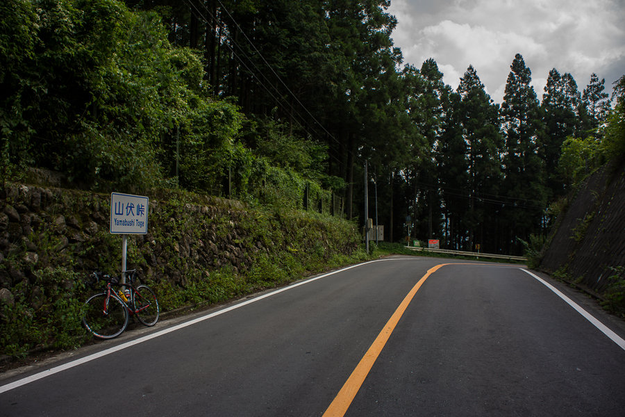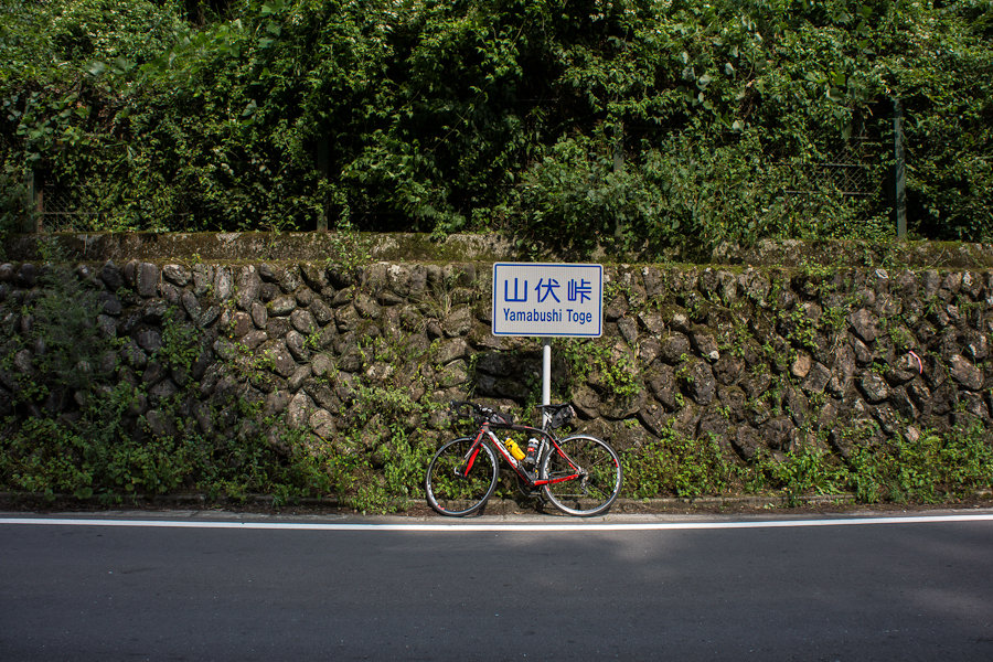 頭痛も収まってきて、立ち上がる事はできるようになりました。少しは良くなったかと、自転車にまたがり進みますが、力を入れてクランクを回すと、両足が急にツリそうな気配を感じます。足は疲れていないはずなので、疲労によるものではなく、おそらく塩分濃度低下による熱けいれんというやつでしょう。大人しく自転車を降り、押して歩いて登ります。「あーこっから全部歩かにゃならんのか」とゲンナリしましたが、休み休みでも登って来てはいたので、案外すぐに山伏峠の頂上に辿り着きました。