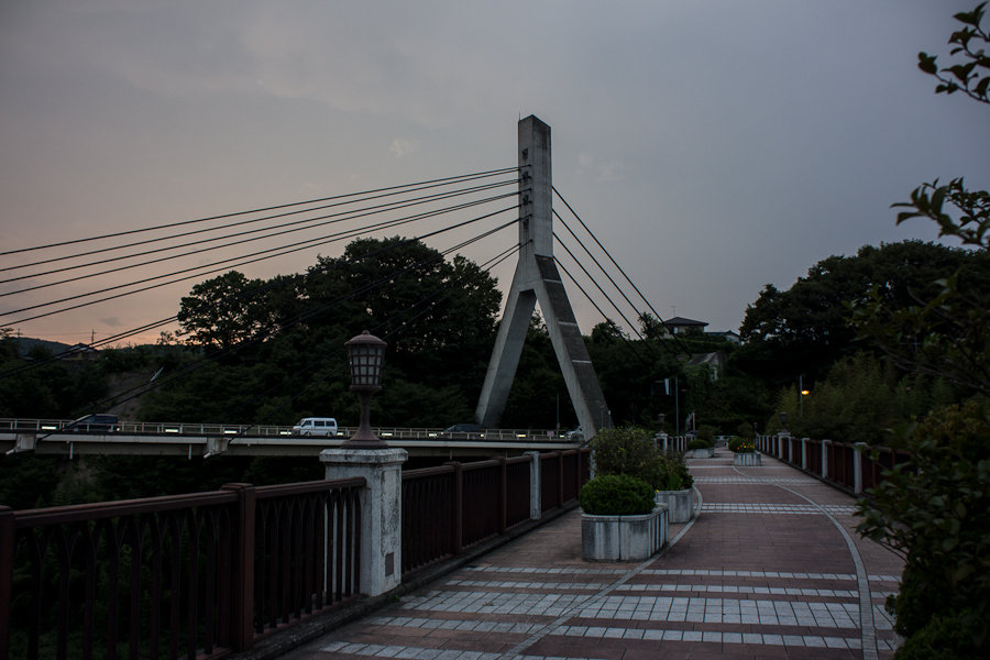 イマイチ把握していませんでしたが、秩父橋は、めんまや、私が立っている場所が古い橋で、その奥にある吊り橋が新しい橋という、2つの橋が組み合わさった構造になっていました。昔は古い橋にも車が走っていたそうですが、今では新しい橋がその役目を果たし、古い橋は遊歩道的に整備されています。