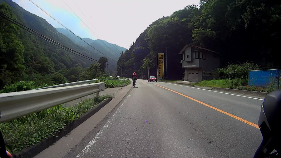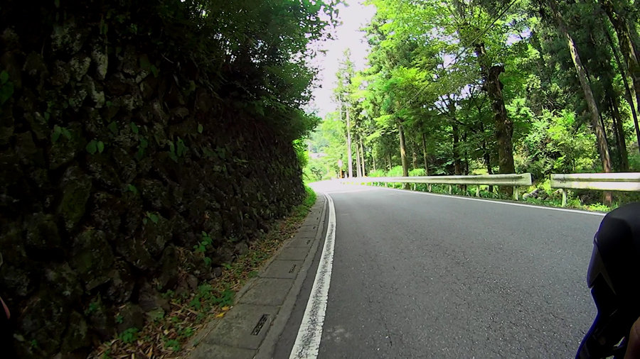 少し下ると、正丸峠という別の峠への分岐点が現れます。そこで、めでたくのんれす氏と合流。1km先の正丸峠でスポドリを買って来てくれてました。ありがたく飲みつつ、ダウンヒルを開始します。いちおう、ヒルクライム区間も1080/60pで動画撮影していましたが、野郎が坂道で「ヒーヒー」言ってる映像しか写っていないので、それよりはいくらか爽快感のあるダウンヒルの模様だけをYouTubeでどうぞ(アップした動画は30pです)。
