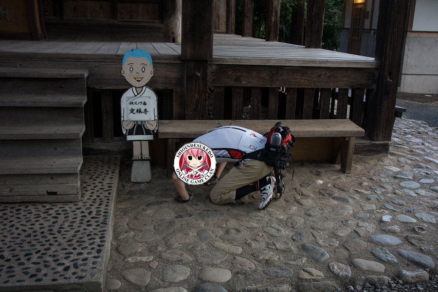そこの旅人さん、せっかくだから、あなる達みたいに坊主の看板の隣に座って記念撮影はいかがですか? 私が撮影してあげましょう。