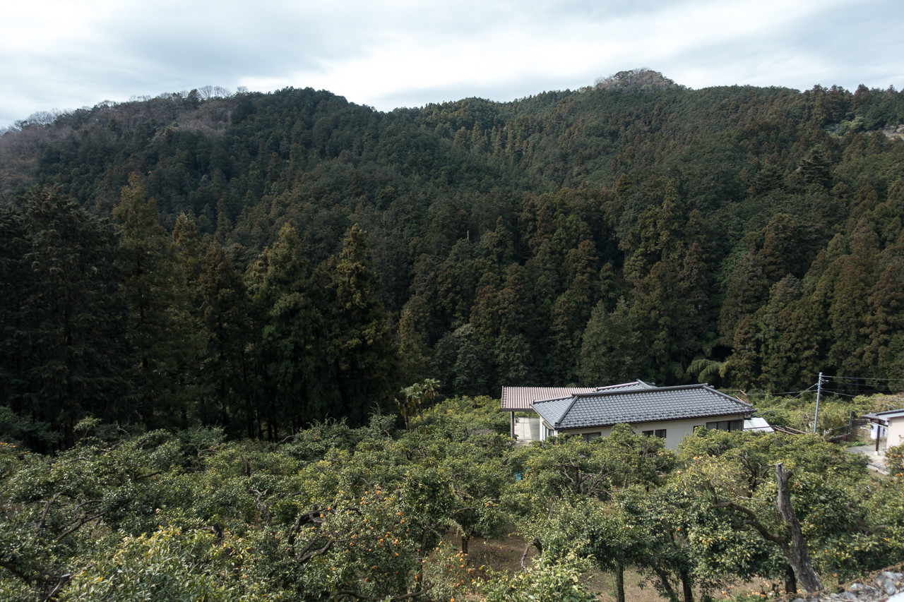 そろそろ「楠の木とかどうでもいいよ」、「昼ごはんのうどん食べさせて」という心境になってきた頃、古びた民家が目の前に現れ、その民家の裏に、今までの森とは明らかにスケールと雰囲気の違う巨木が現れました。どうやら「上谷の大クス」が現れたようです。