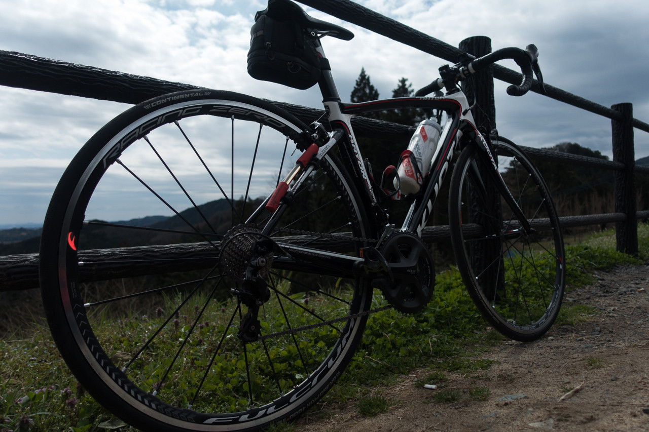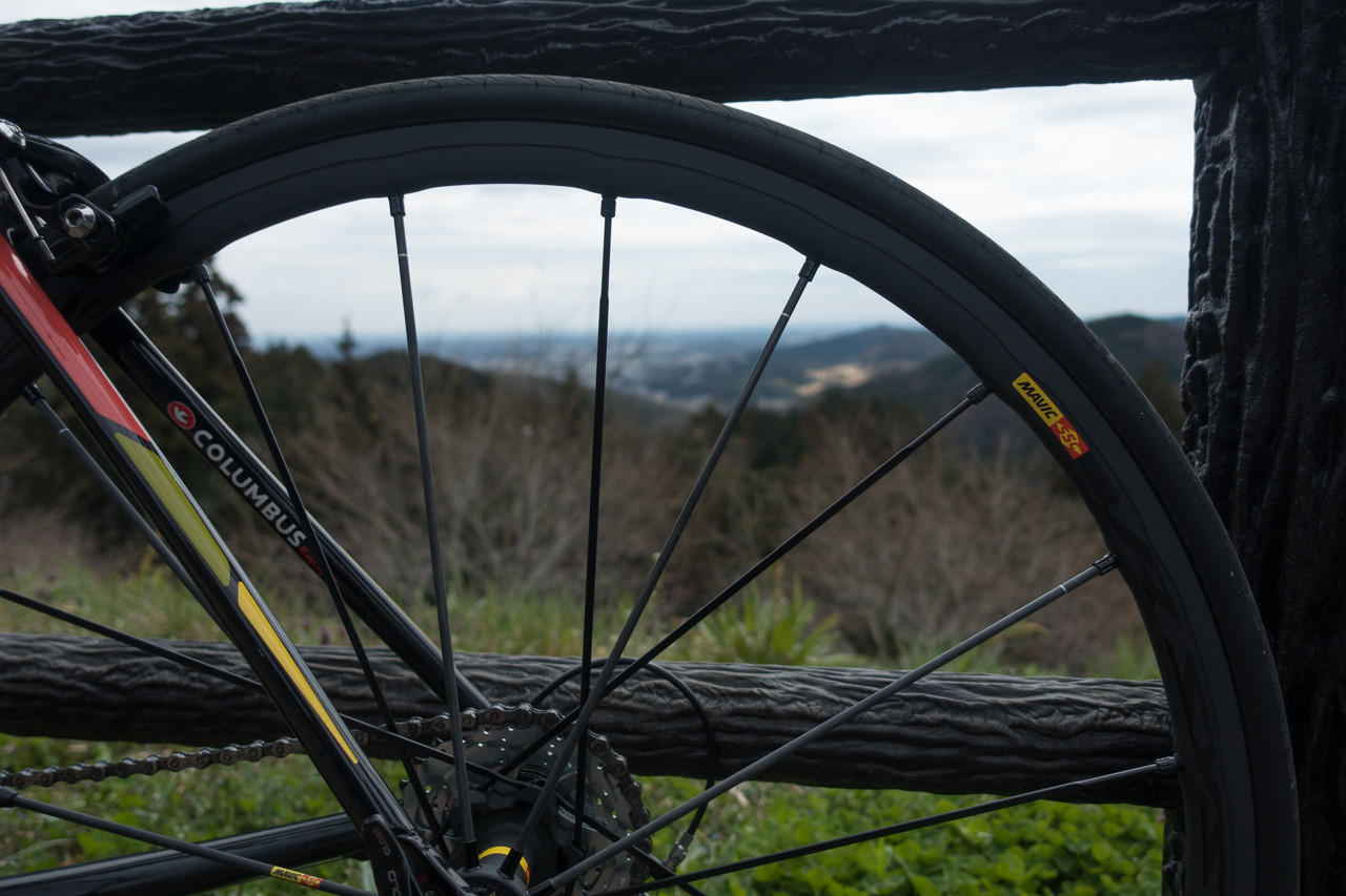 風景のついでに、mkさんの新ホイール(レーゼロ)と、ゆっけさんの新ホイール(R-Sys)も激写。