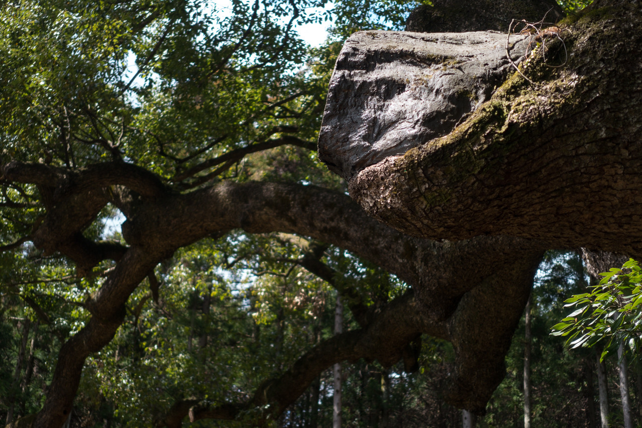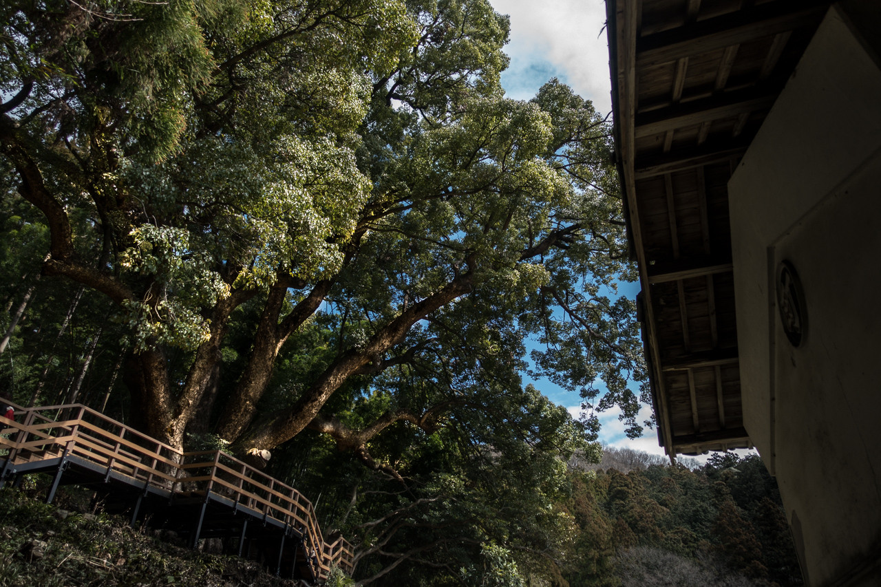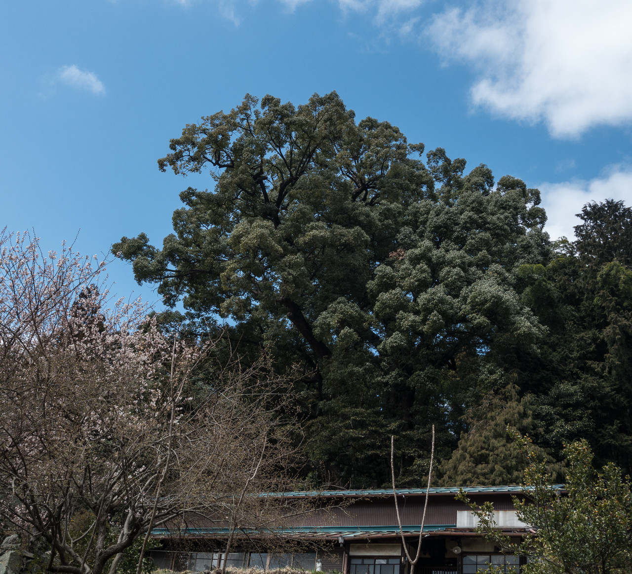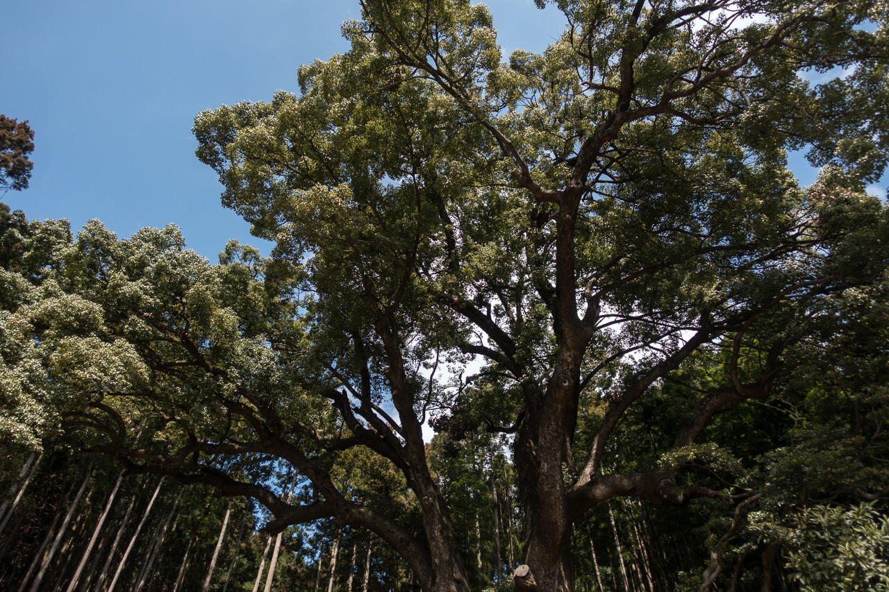 大木のスケール感を伝えたいと、24mmの画角いっぱいに楠の木を配置した写真が上のもの。確かに木の広がり具合はわかりますが、異様なほど大きいのかどうかは、正直よくわかりません。