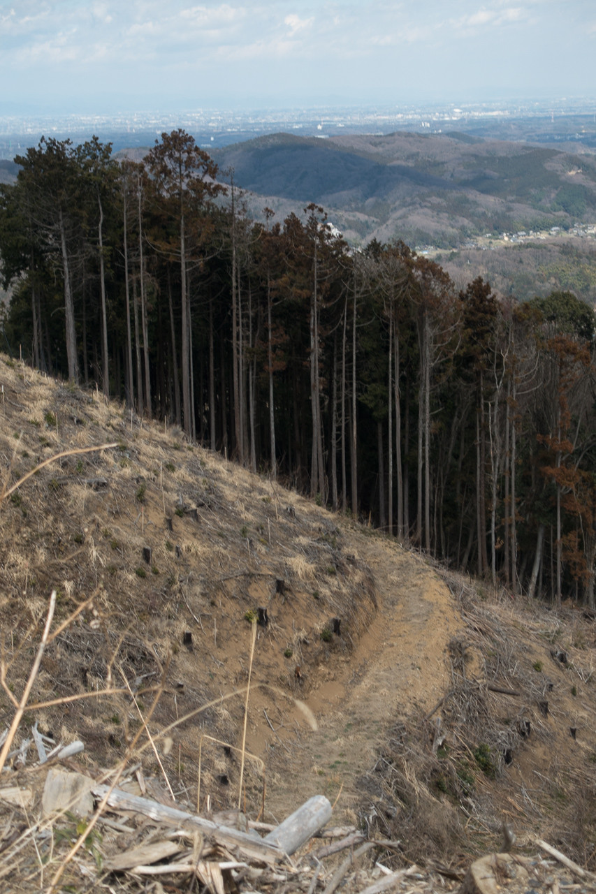 だいぶ登ってきて、見晴らしも良くなってきました。標高や300m、400m程度。このクラスのデコボコが連続する魔界ぶりは、まさしく奥武蔵グリーンライン。