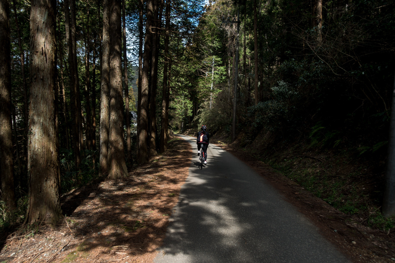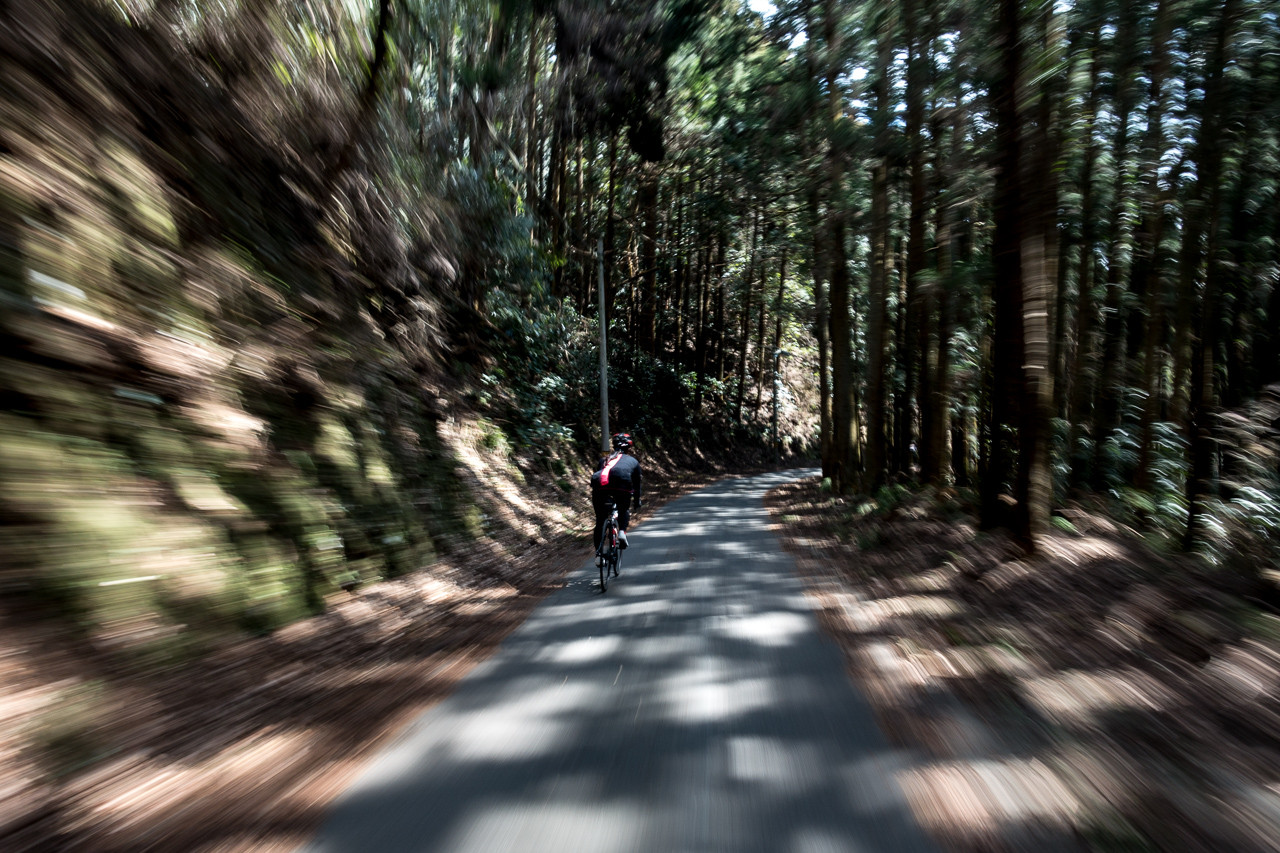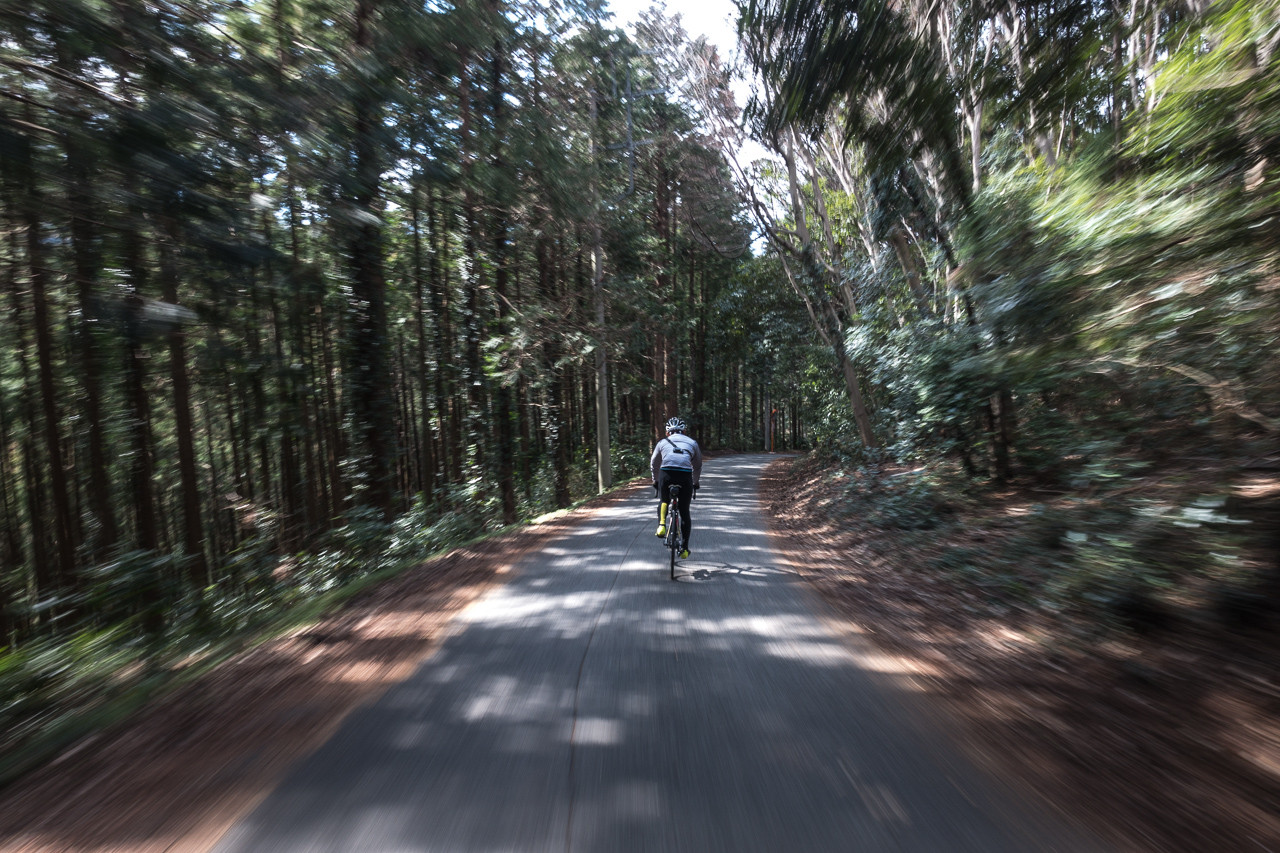 再び登場する10%オーバー、時に15%にも迫るヒルクラ地獄。急峻なヒルクラとダウンヒルを幾つも乗り越えて、神秘的な楠の木を追い求めていきます。