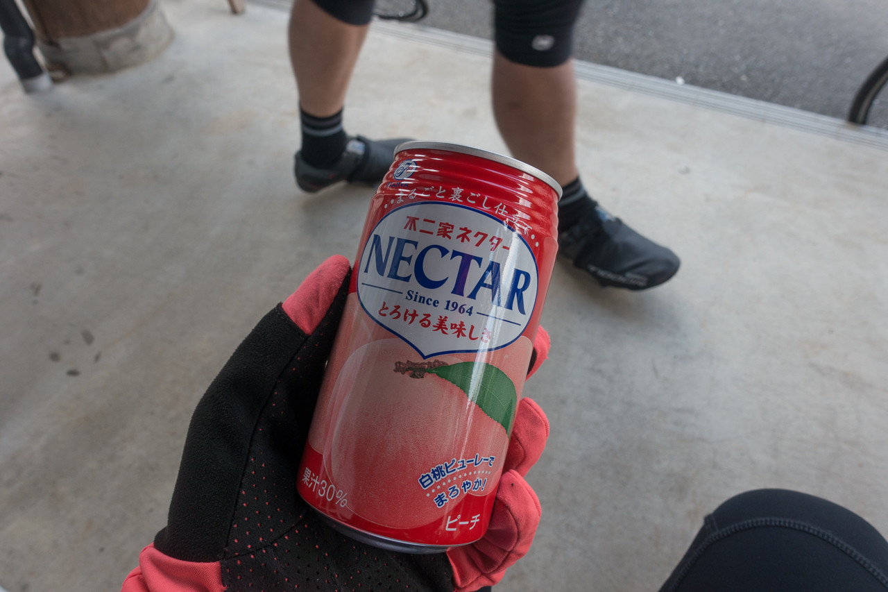 正午は過ぎており、お腹もすいた中での激坂コンボは強烈です。たまらず、途中の休憩施設で最終手段のピーチネクター投入。美味しいく、冷たく、カロリーも補給できる夢のドリンク。理想を言えば、ピーチネクターを超える禁断の最終秘儀・ピルクルを投入したいところですが、奥武蔵にはロクにコンビニも無く、自販機のピーチネクターで我慢するしかありません。