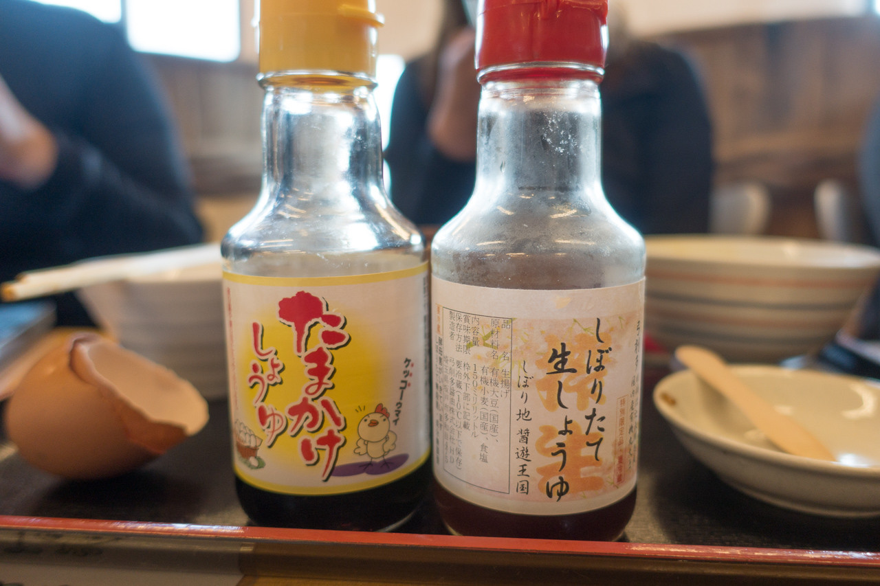しぼりたての醤油と、専用醤油を使った卵かけごはんに